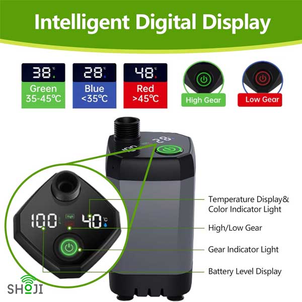 نمایشگر LED پمپ دوش قابل حمل، امکان مشاهده فوری معیارهای حیاتی را فراهم میکند: درصد باتری، دمای آب و حالت دوش فعال. نمایشگر دما (نمایش دمای آب محیط) به کاربران کمک میکند تا سطح راحتی را اندازهگیری کنند، به خصوص هنگام استفاده از منابع آب طبیعی مانند دریاچهها یا نهرها (گرمایش شامل نمیشود). با ردیابی تخلیه باتری در زمان واقعی، اردونشینان میتوانند حالتها را به صورت استراتژیک تغییر دهند و در صورت نیاز، شارژ مجدد را اولویتبندی کنند.