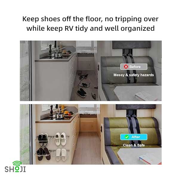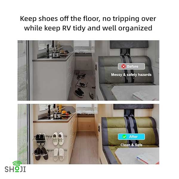 مناسب برای کفشهای مختلف: این جاکفشی همهکاره برای کمپر ، انواع و اندازههای کفش را در خود جای میدهد و تضمین میکند که کفشهای شما به طور مرتب و همیشه در دسترس هستند و این یک وسیله ایدهآل برای هر کمپر و کاروان است.